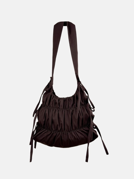 Torebka KIOTO to nasz pierwszy i zarazem bestsellerowy model. Posiada 6 ozdobnych tasiemek, wiązanych w kokardki. Dzięki wszytym gumkom KIOTO rozciąga się i bez problemu mieści format A4, dlatego sprawdzi się zarówno na uczelni, jak i podczas codziennych miejskich wypadów. W środku znajdziesz dwie mniejsze kieszenie, idealne na telefon, klucze czy słuchawki. Torebka zapinana jest na wygodny magnetyczny zatrzask, który zapewnia szybki dostęp do wnętrza.